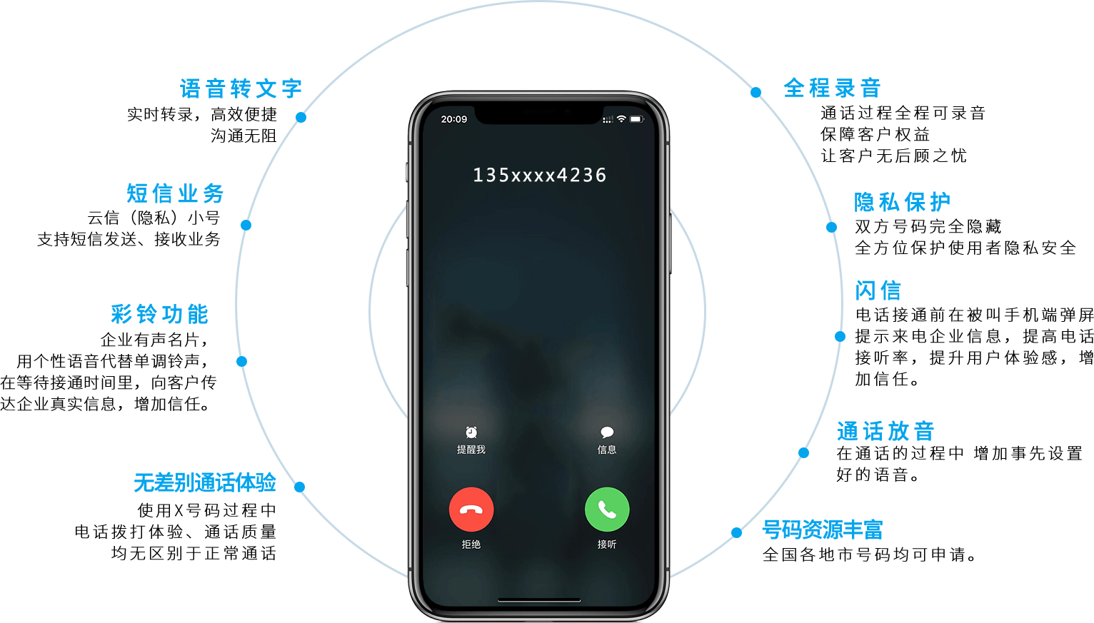 特点:一个号码X可以同时绑定多个号码A,可回拨到最后一通给隐私号X拨打的电话。