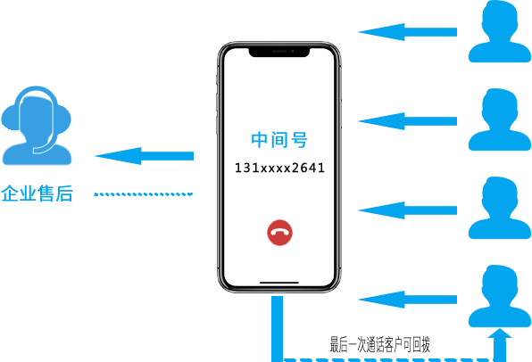 特点:一个号码X可以同时绑定多个号码A,可回拨到最后一通给隐私号X拨打的电话。
